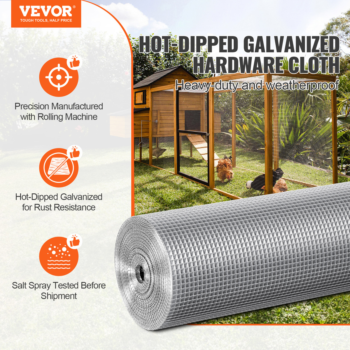 Heavy-Duty Hot-Dipped Galvanization: Our low-carbon steel hardware cloth undergoes professional hot-dipped galvanization for a uniform coating without bubbles. Pre-tested for salt spray, it ensures durable corrosion resistance, lasting through years of outdoor use without needing replacements.