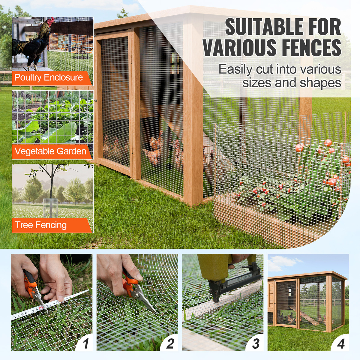 Easy to Cut and Use: Simply cut with scissors or wire cutters to create different shapes and sizes for chicken coops, garden beds, rabbit fences, hedges, drainage grid fences, flower beds, DIY projects, and more. Caution: Beware of sharp edges after cutting; always wear gloves when handling.
