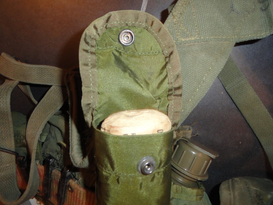 POUCHES AND ACCESSORIES SHOWS WEAR : I COULD EASILY WASH THIS WHOLE RIG, BUT I BELIEVE EVERY SCUFF, EVERY MARKING, EVERY SCRAPE IS A BATTLE SCAR FROZEN IN TIME. EVEN WHEN A SOLDIER, AIRMAN, MARINE, SAILOR WRITES THEIR NAME OR UNIT ON THEIR EQUIPMENT ITS A PIECE OF ART THAT LIVES FOREVER.