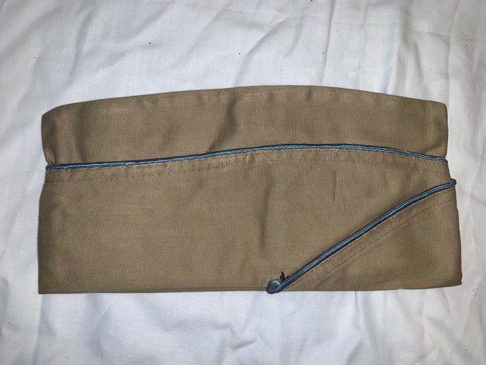 MENS US ARMY TAN GARRISON OVERSEA COVER SIDE CAP INFANTRY SERVICE CORD 7 1/4
