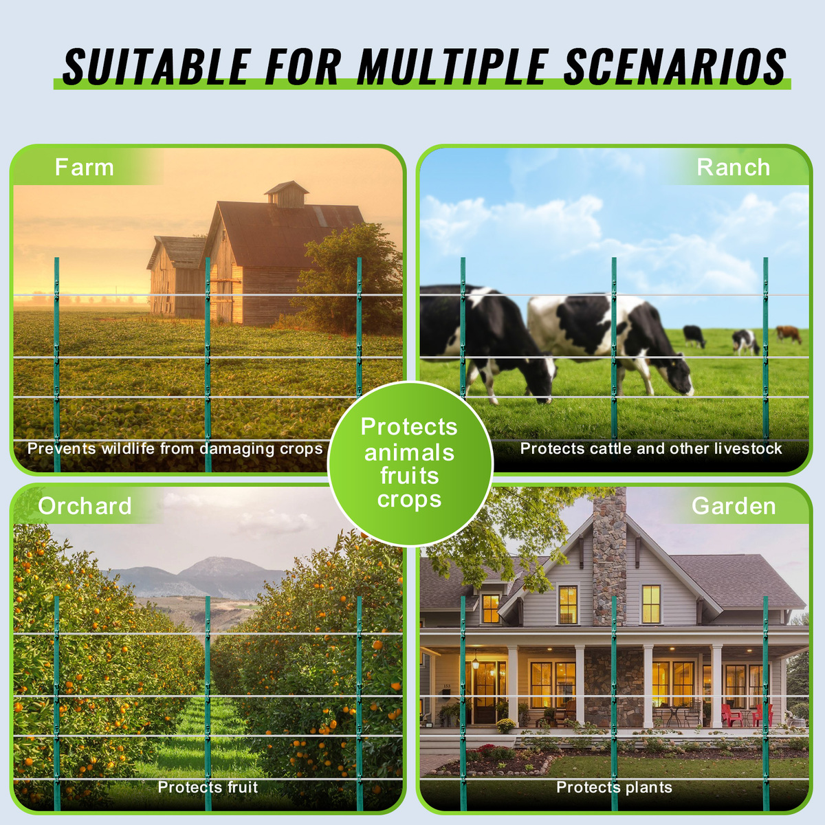 Aluminum Alloy Material: The aluminum alloy construction resists rust, corrosion, and UV damage. The high visible wire fencing is also less likely to break, lightweight, and easy to remove and store, leaving no debris on the pasture and protecting the environment.