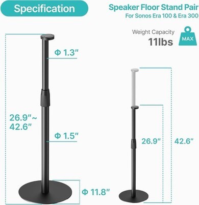 This adjustable-height speaker stand pair is designed specifically for Sonos Era 100 and Sonos Era 300 speakers, providing a stable, clean, and professional-looking setup for your home audio system.