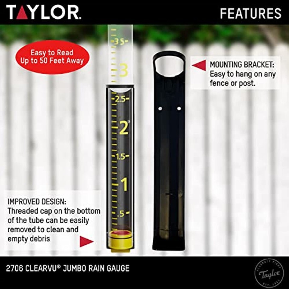 Taylor Precision Products 5 inch Capacity Jumbo Rain Gauge, Yellow