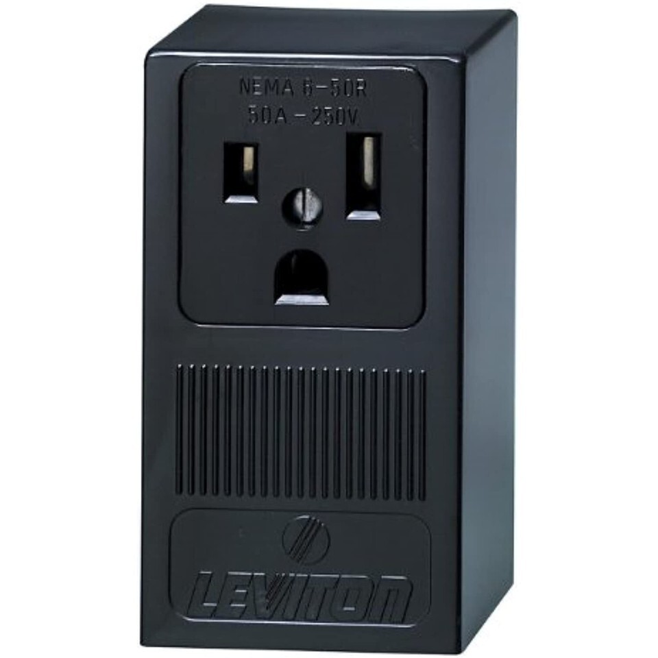 Product Description Leviton 5378 50 Amp, 250 Volt, Surface Mounting Receptacle, Straight Blade, Industrial Grade, Grounding, Black.Total_power outlet:1 From the Manufacturer Leviton's line of Extra Heavy-Duty Industrial Grade receptacles are designed and manufactured to withstand the harsh conditions typically associated with industrial environments. Available in a wide variety of configurations, including isolated ground, tamper-resistant, hospital grade, etc., these Industrial Grade devices are the electrical contractor's choice for use in factories, schools, hospitals and commercial office buildings. 50 Amp, 250 Volt, Surface Mounting Receptacle, Straight Blade, Industrial Grade, Grounding, Black.