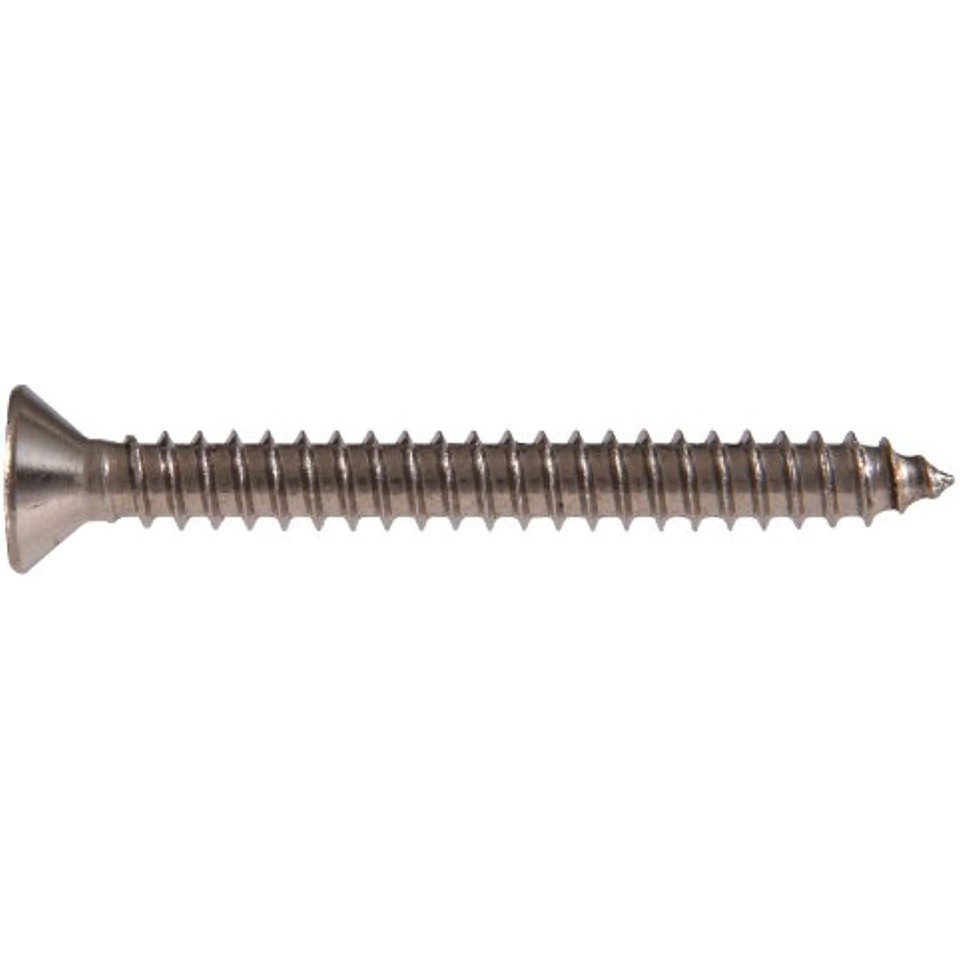 Product Description Flat head Phillips sheet metal screw. Stainless steel. 100-pieces per C-Pak. From the Manufacturer These sheet metal screws, or tapping screws, are highly versatile and are used to attached metal, wood, fiberglass, and plastic. The sharp threads draw material together and ensure a secure hold. Sheet metal screws are fully threaded with a sharp point.