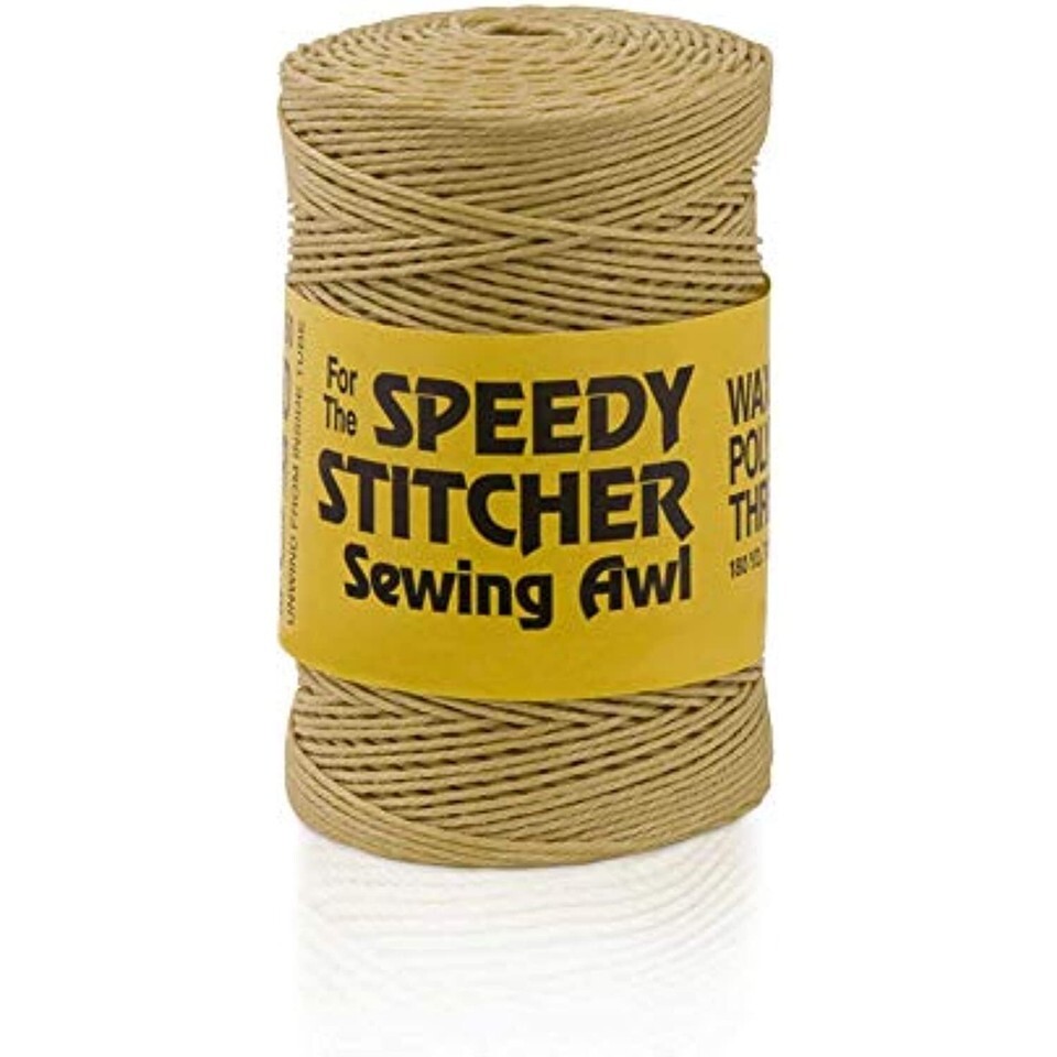 This high quality sewing awl is more like a hand-held sewing machine. The thread is contained right in the handle of the awl for convenience. The kit comes with the Speedy Stitcher sewing awl, a bobbin wound with 14-yards of waxed coarse thread, 4 needles - 2 straight and 2 curved, a 180-yard tube of additional waxed coarse thread and use instructions.