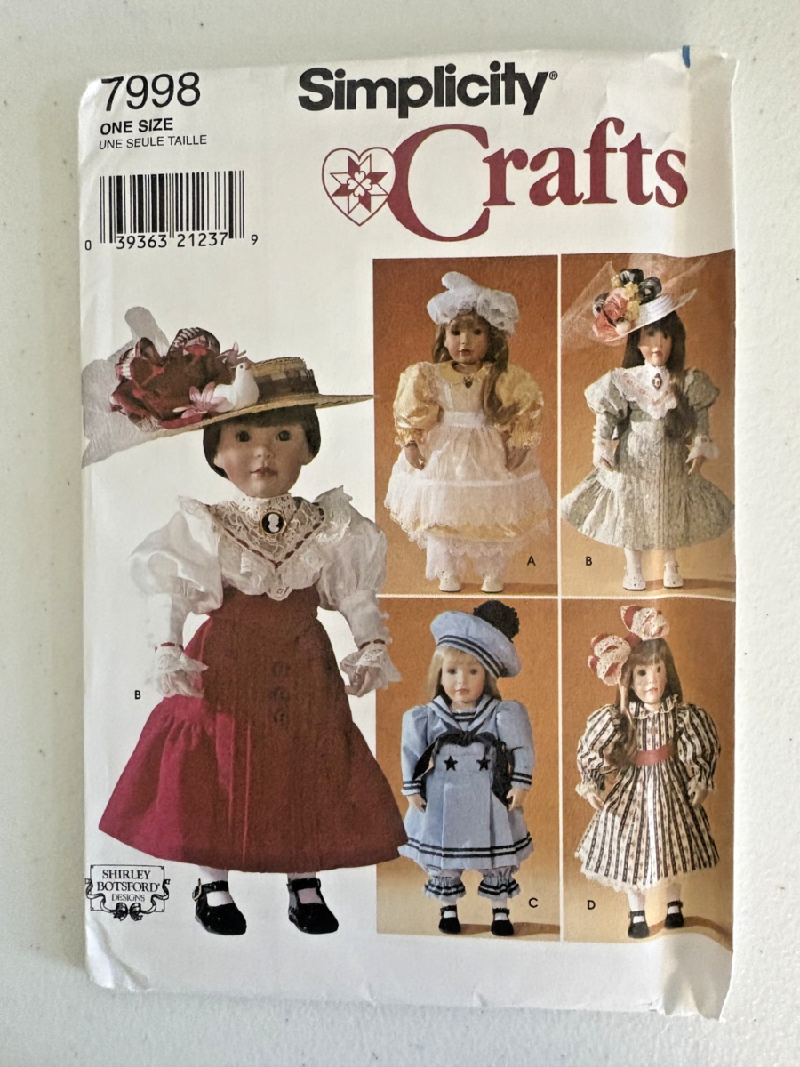 Simplicity Crafts 7998 Pattern One Size 18" Doll Clothes Uncut Vintage 1997 - Shirley Botsfield Designs. This is a new, uncut pattern - UPC #039363212379 - See Photos for further description.
