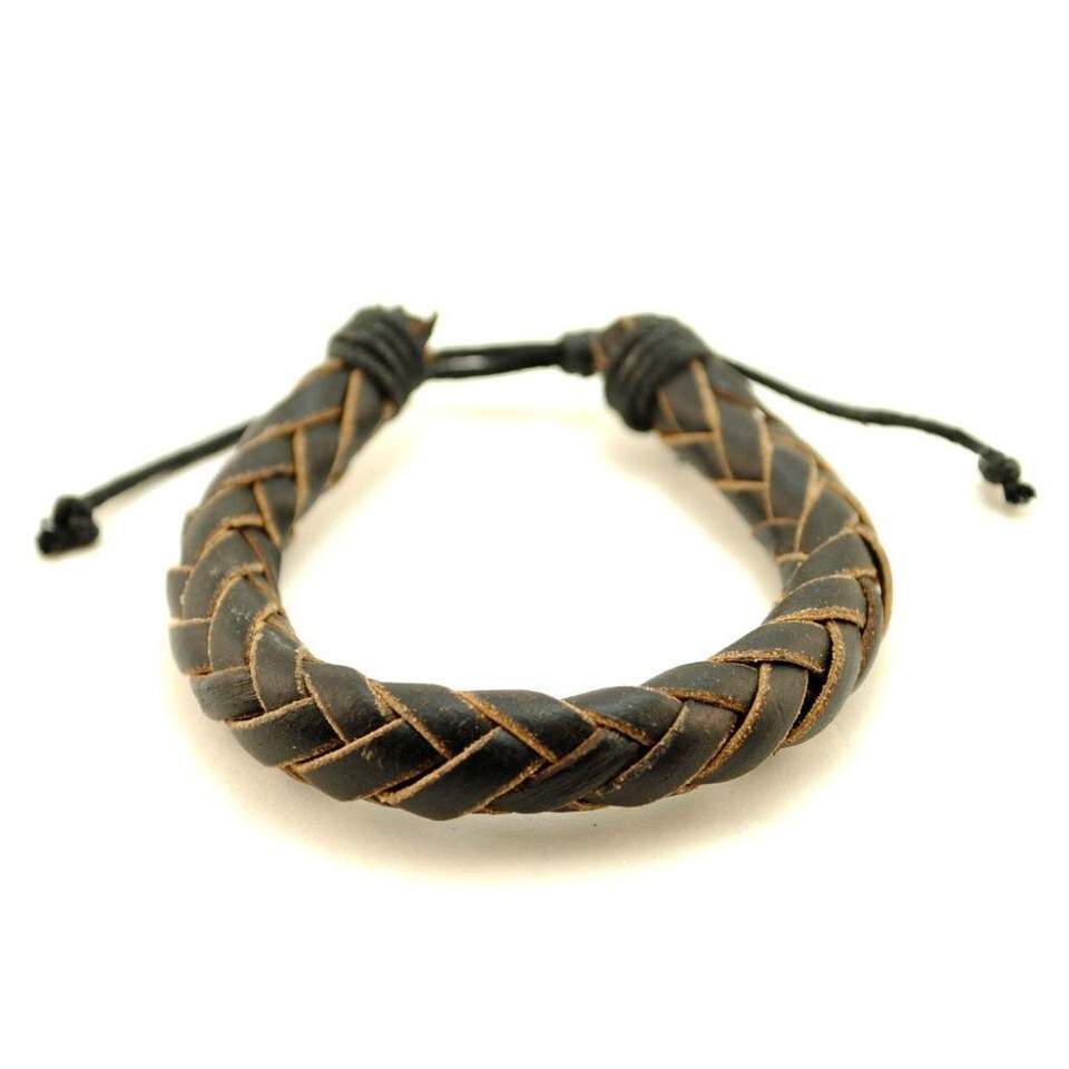 NATURAL LEATHER BRACELET Black Braid Cord Hemp Men Women Braided Adjustable NEW