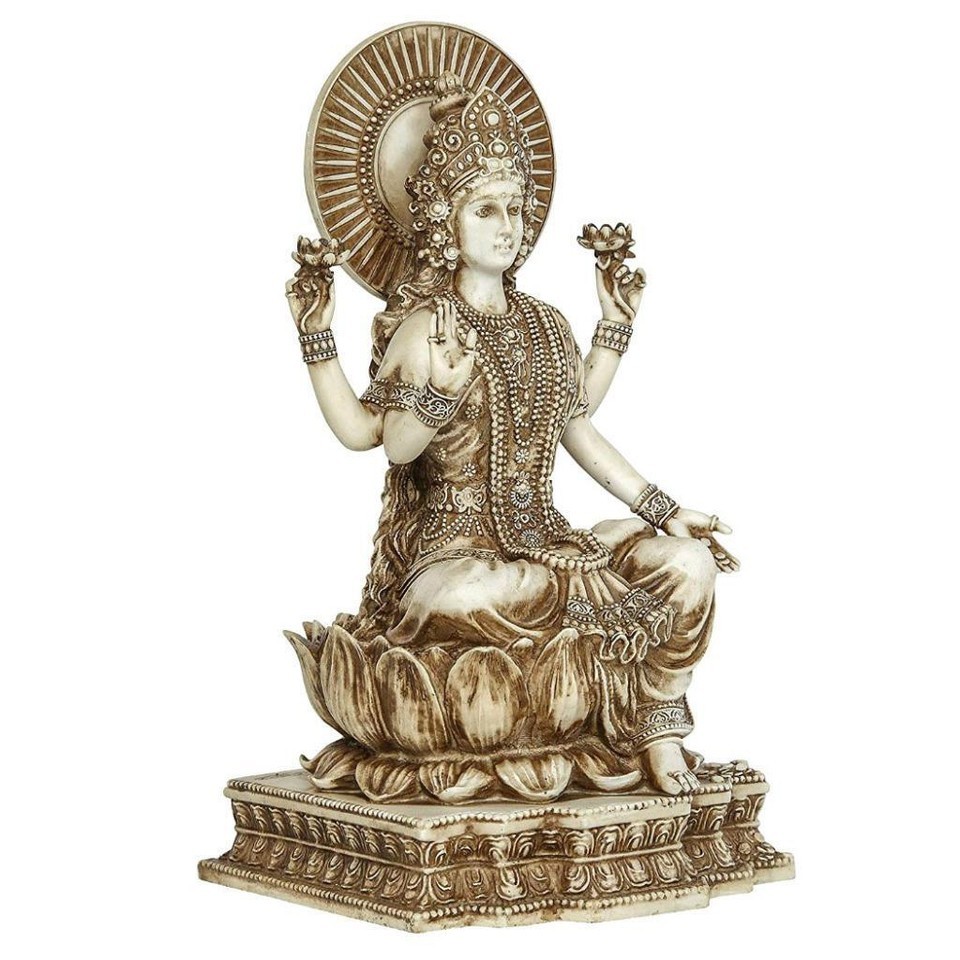 LAKSHMI STATUE 6" Hindu Wealth Goddess High Quality Ivory Color Resin Laxmi New