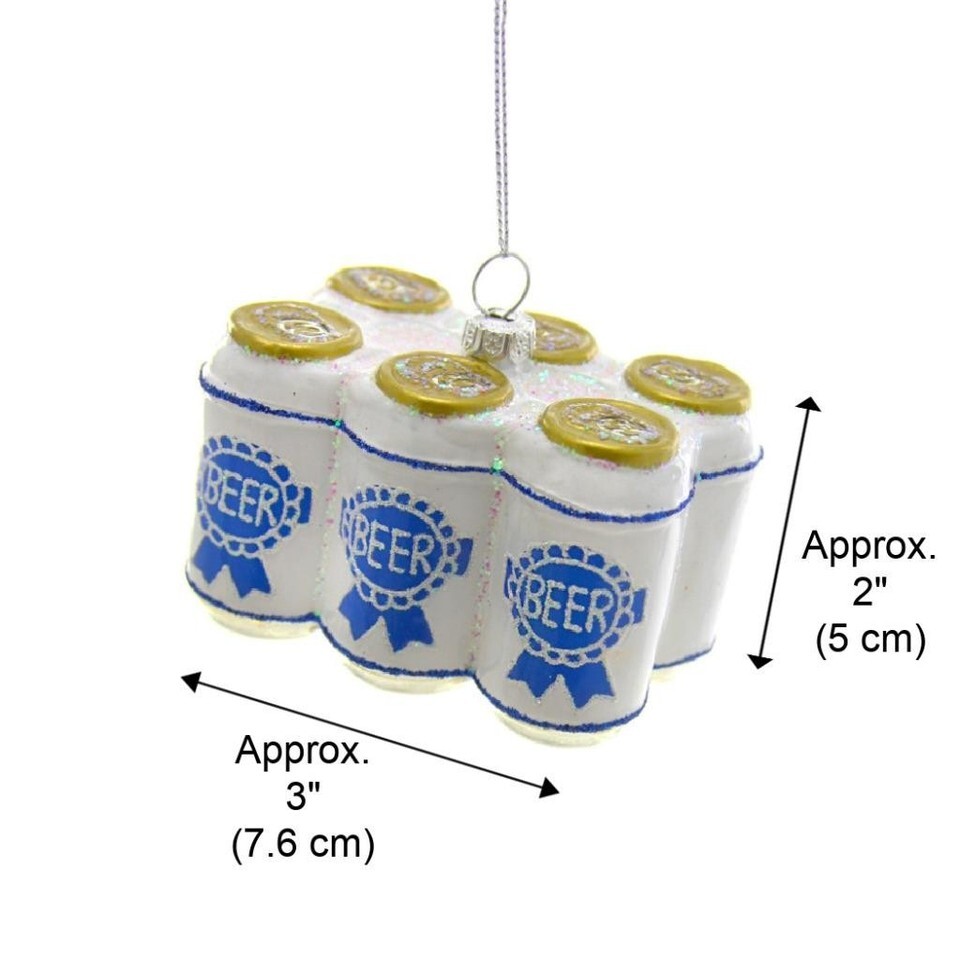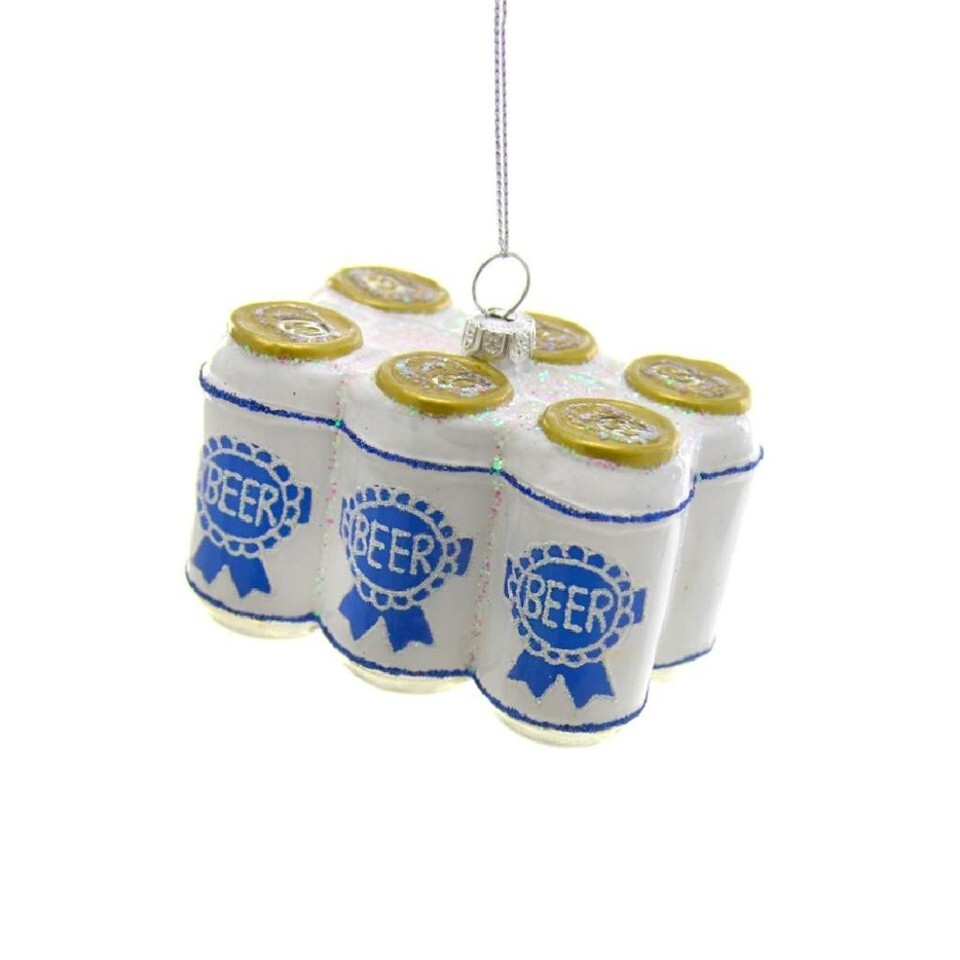 SIX PACK OF BEER ORNAMENT 3" Funny Blue Ribbon Glass Christmas Tree NEW