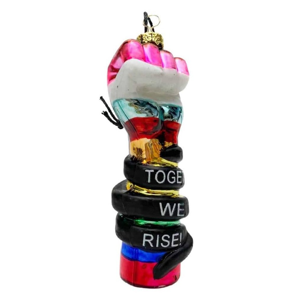 TOGETHER WE RISE ORNAMENT 4" Glass LGBTQ Raised Fist Power Salute Christmas Tree