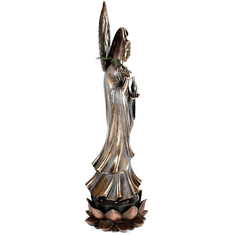 KWAN YIN STATUE 17" Buddhist Goddess Lotus HIGH QUALITY Guan Quan Bronze Resin