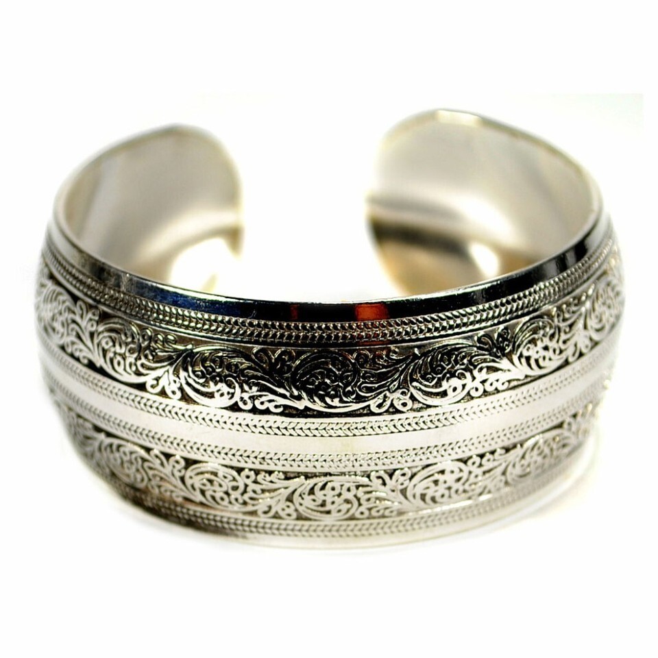 Silver Tone Metal Cuff Filigree Nepal and 50 similar items