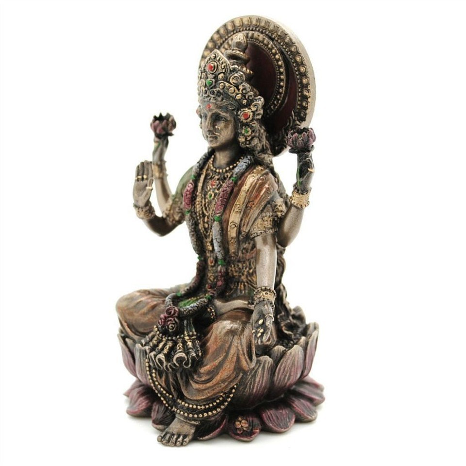 LAKSHMI STATUE 4" Hindu Indian Wealth Goddess Laxmi High Quality Bronze Resin