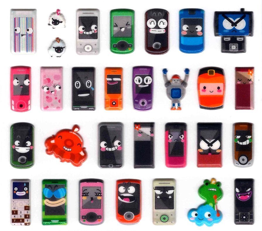 Set of Fun Puffy Stickers - Cute Cell Phone Faces