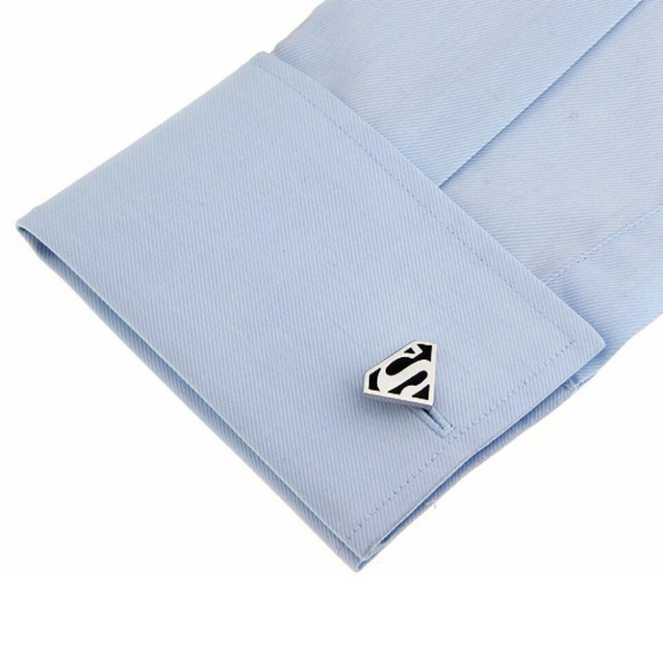 SUPERMAN CUFFLINKS Super Hero Comic Silver Tone Black Enamel NEW with GIFT BAG