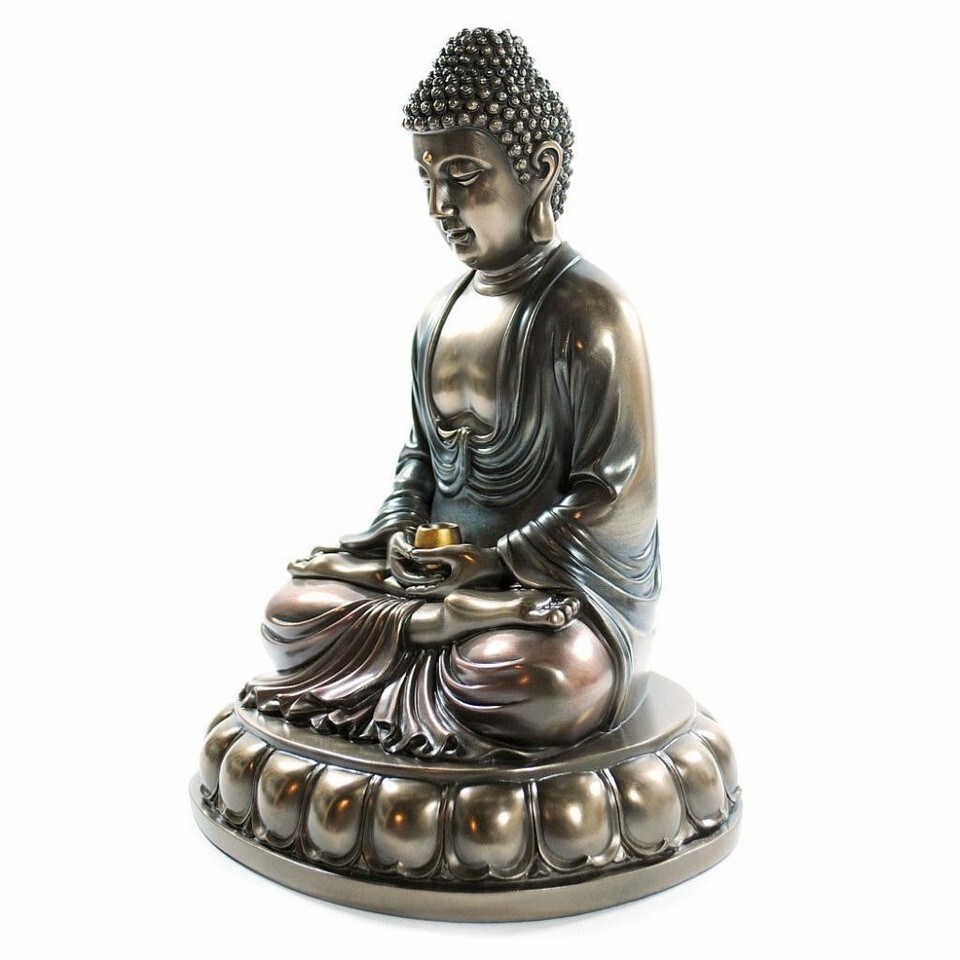 BUDDHA STATUE 10.5" High Quality Bronze Resin Buddhist Icon Meditate Shakyamuni