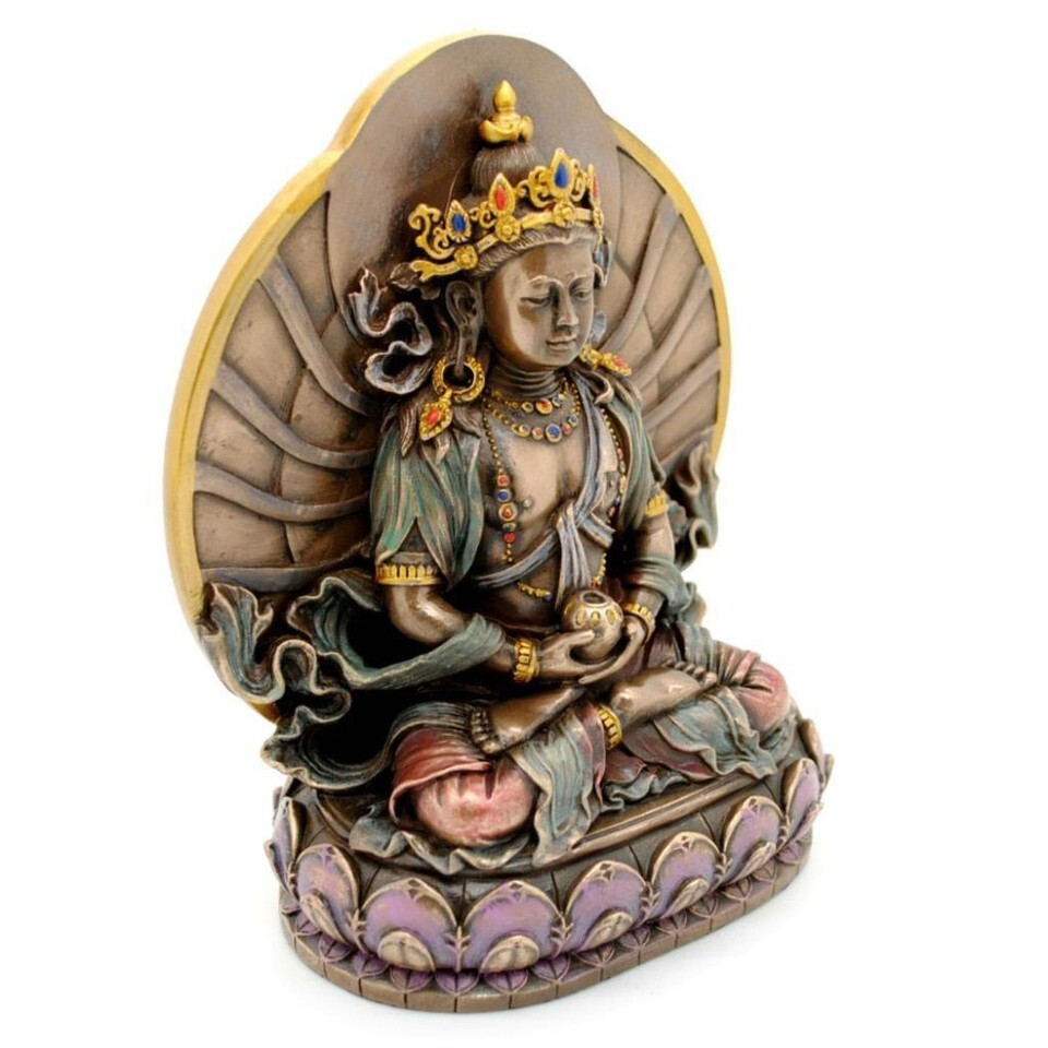LONG LIFE BUDDHA STATUE 6.25" Buddhist Icon of Longevity Bronze Resin Amitayus