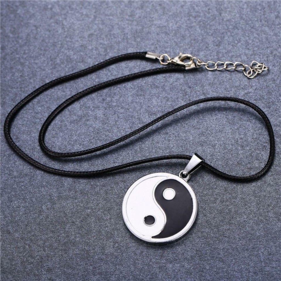 YIN YANG NECKLACE Enamel Silver Tone Pendant Charm Jewelry Tai Chi Martial Arts