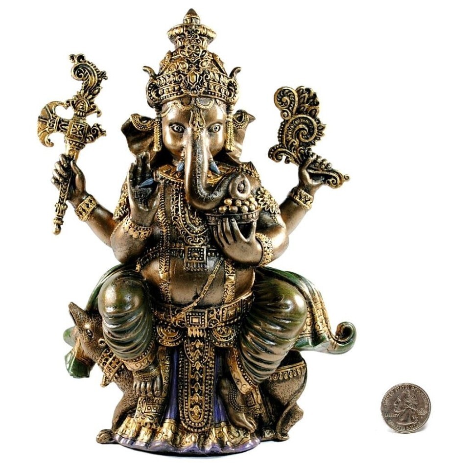 This statue of the Hindu elephant god Ganesh is made from cold cast resin. It has excellent details and is substantial with good weight.