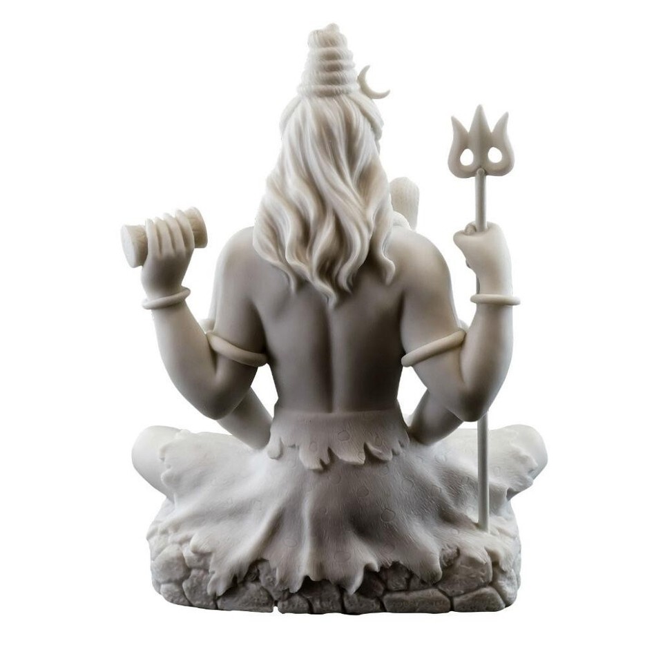 LORD SHIVA STATUE 8" Hindu Indian God White Marble Finish Resin Seated Lotus NEW