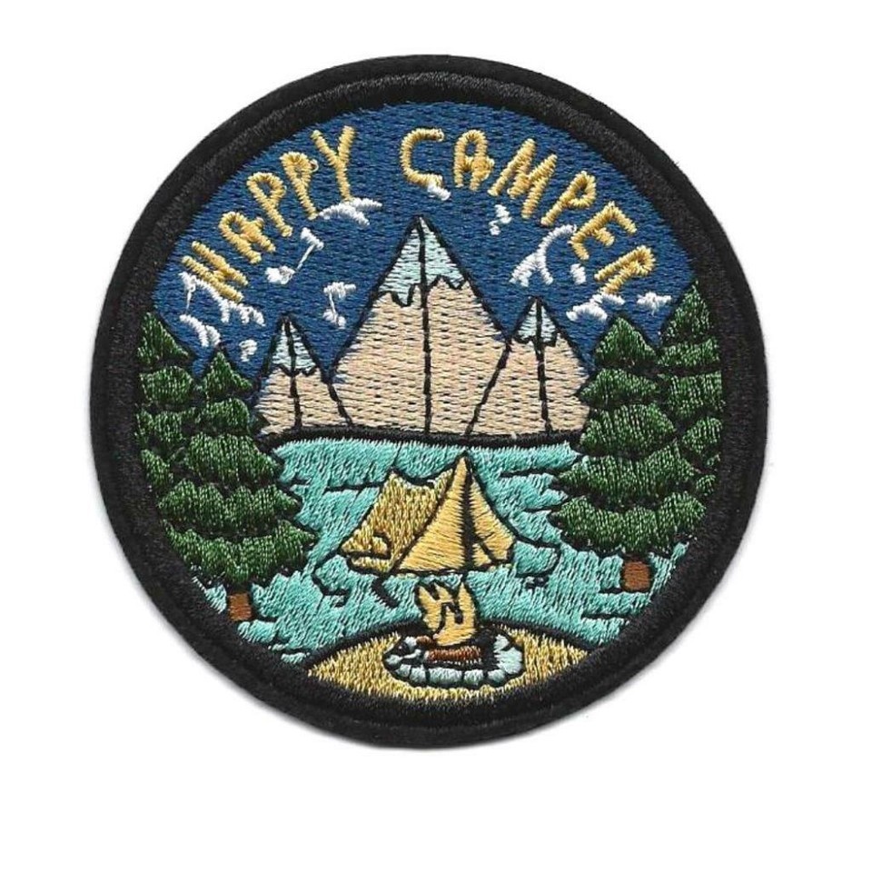 HAPPY CAMPER IRON ON PATCH 3" Outdoor Adventure Camping Embroidered Applique