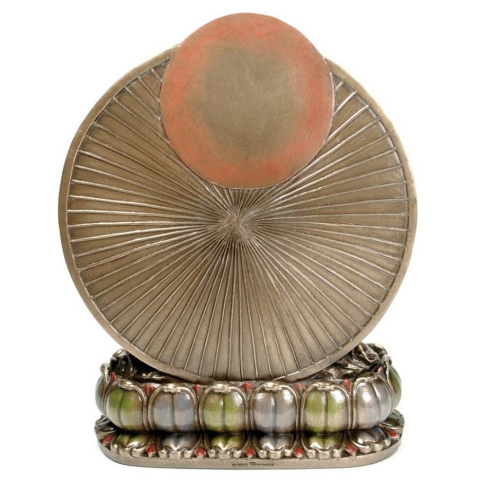 It is made from cold cast resin that is beautifully bronze plated and features superior craftsmanship, substantial weight, excellent details and hand painted accents with rich colors.