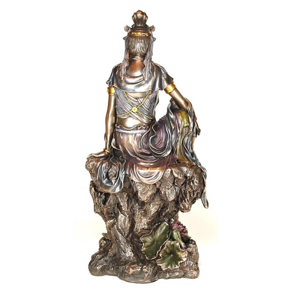 KWAN YIN HEART SUTRA STATUE 15" Quan Yin Guan Goddess Water Moon Bronze Resin