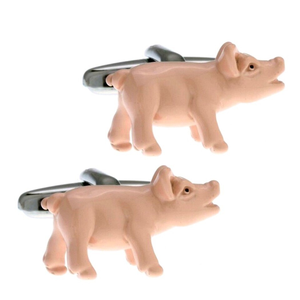 PIG CUFFLINKS Bacon Farm Animal 3D Pink Enamel NEW w GIFT BAG Farmer Fathers Day