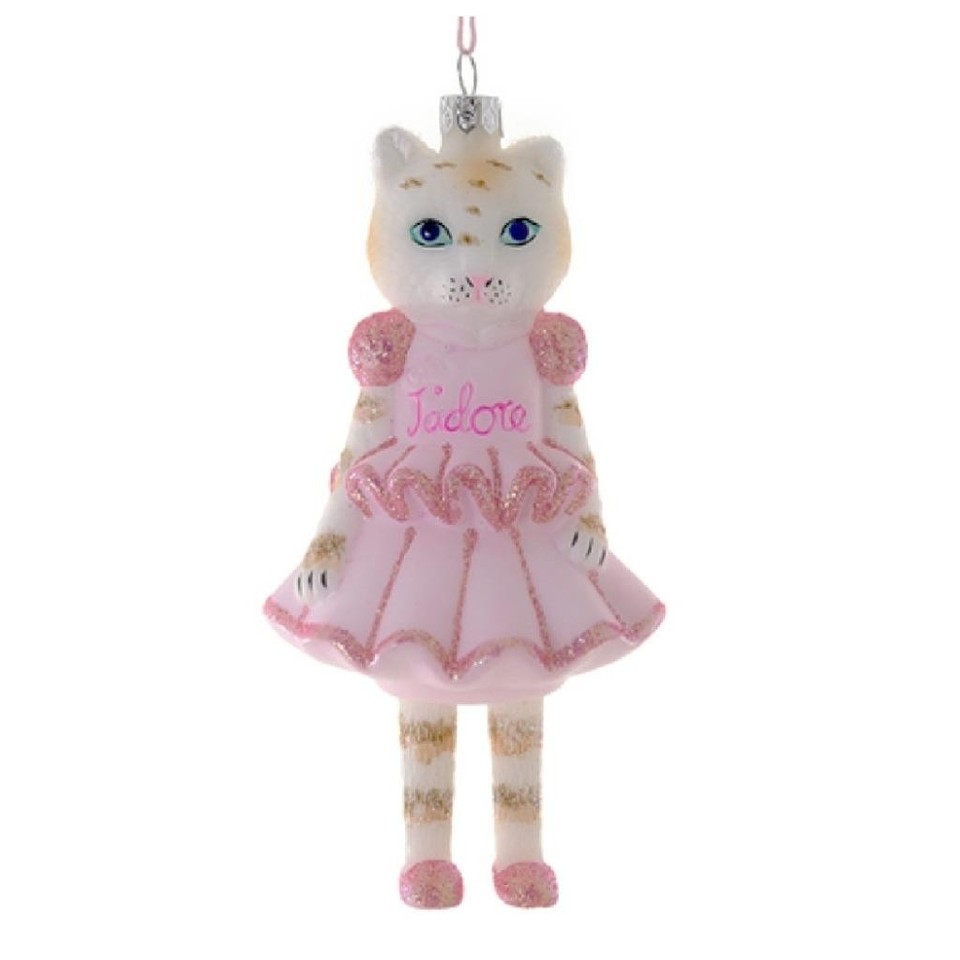 J'ADORE KITTY ORNAMENT 5.5" Glass Cute French Cat in Clothes Christmas Tree NEW