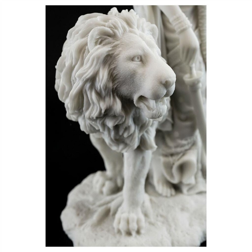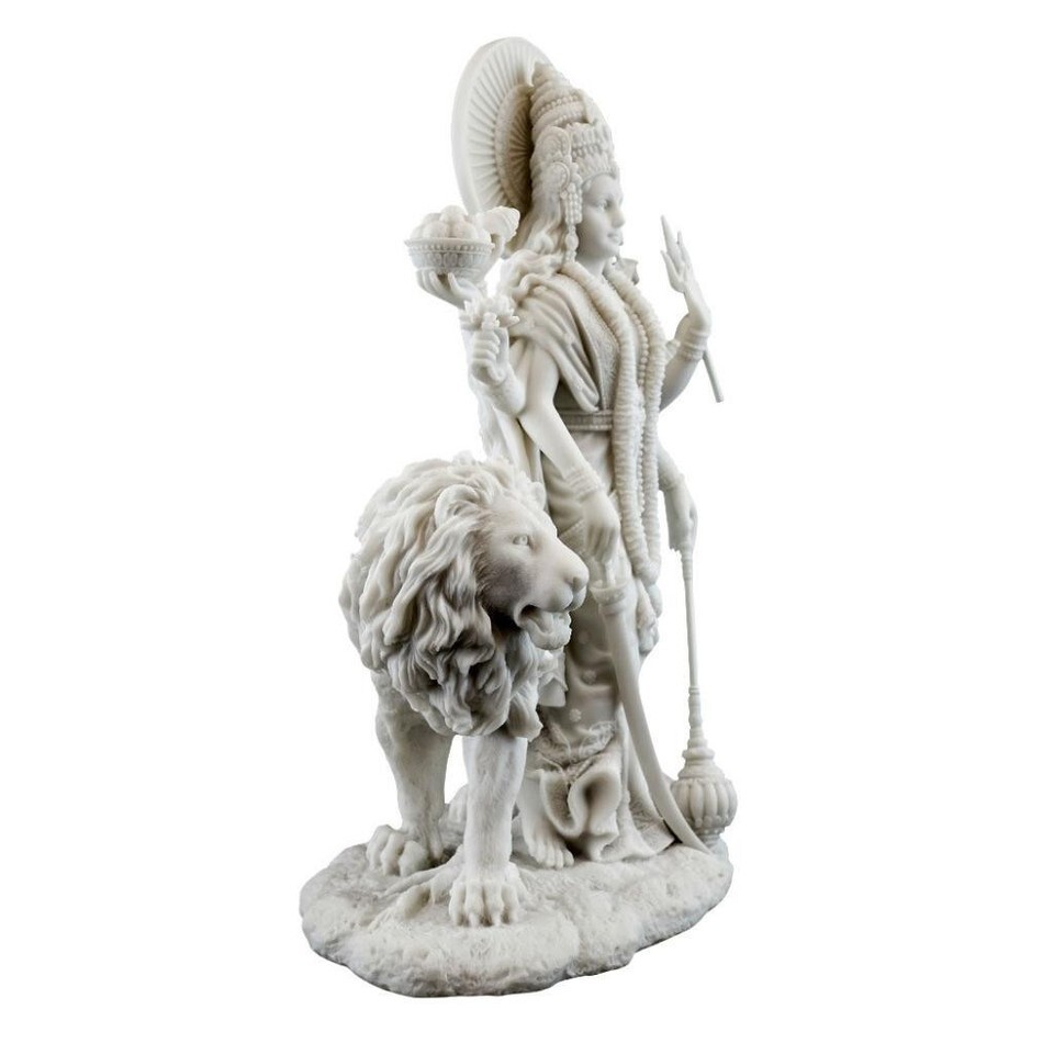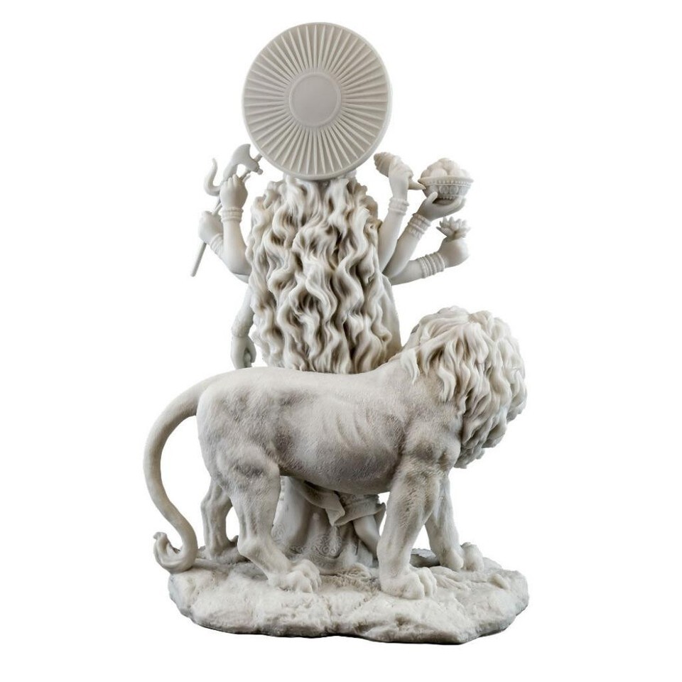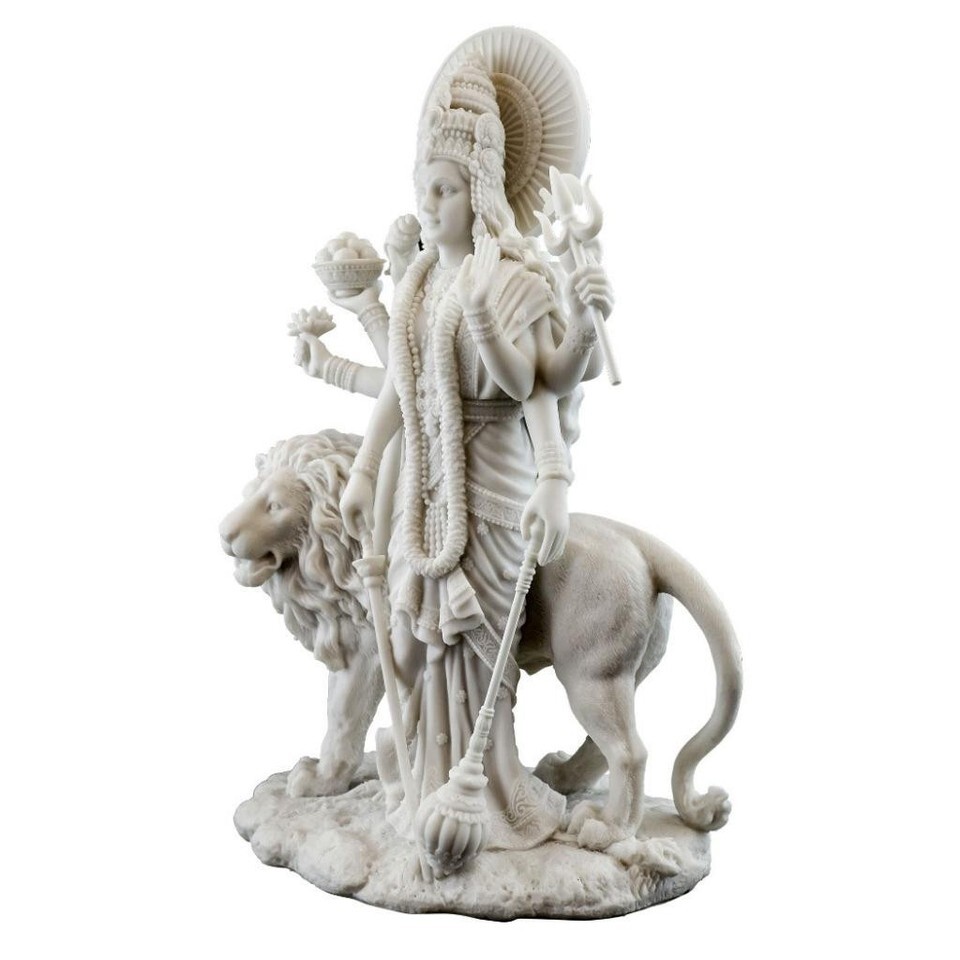 DURGA STATUE 11" Hindu Divine Mother Goddess Deity White Marble Finish Resin
