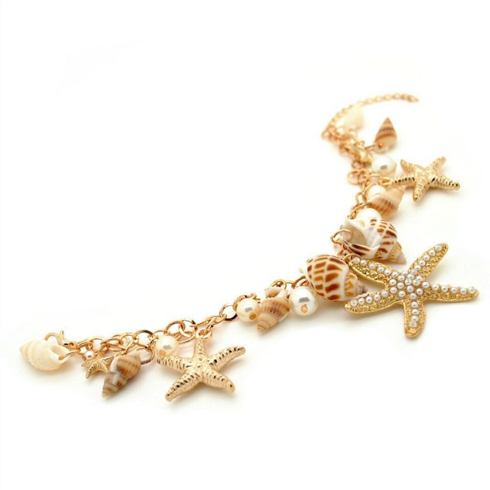BEACHCOMBER CHARM BRACELET Summer Beach Shore Real Shell Faux Pearl Starfish NEW