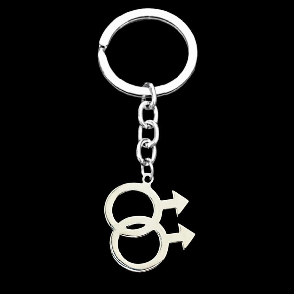 DOUBLE MALE SYMBOL KEYCHAIN Stainless Steel Metal Key Chain LGBT Gay Pride Mars