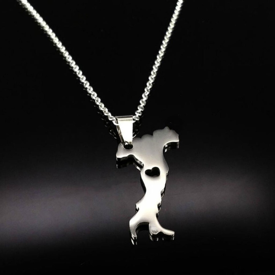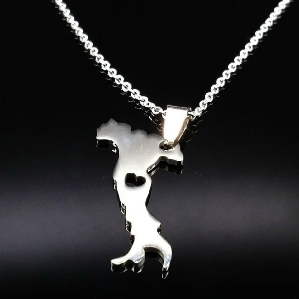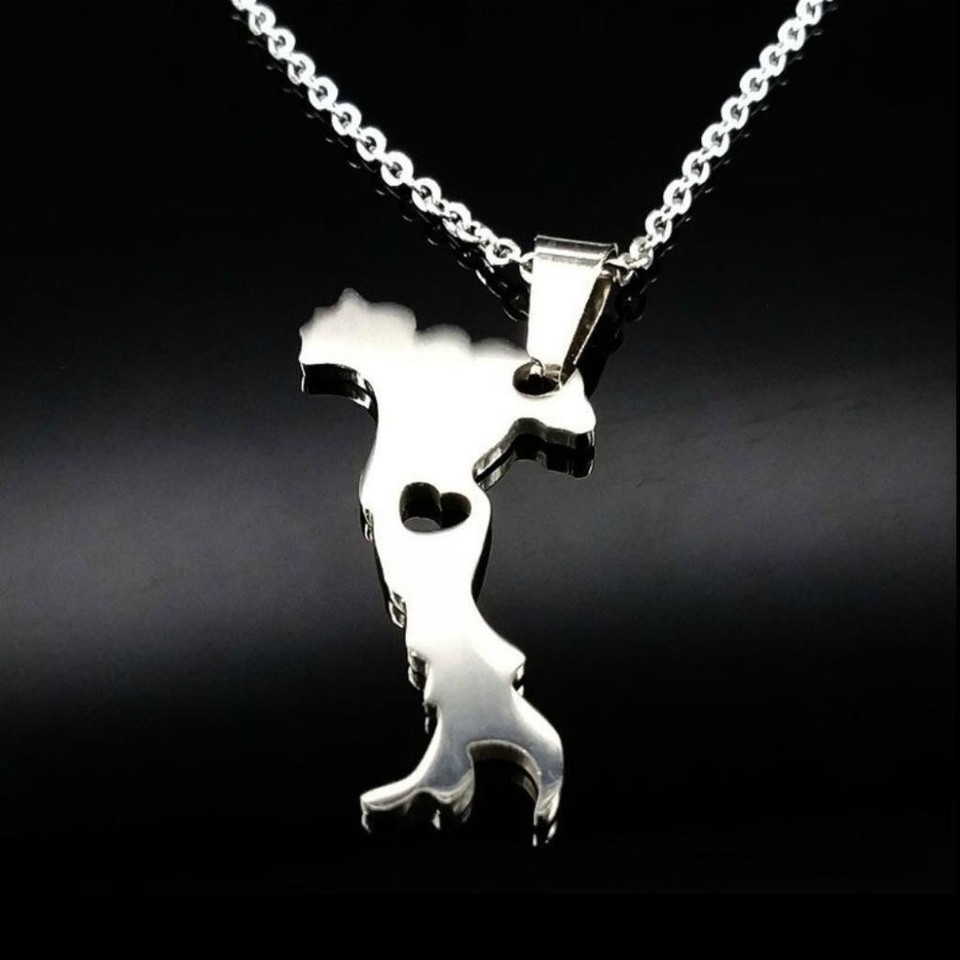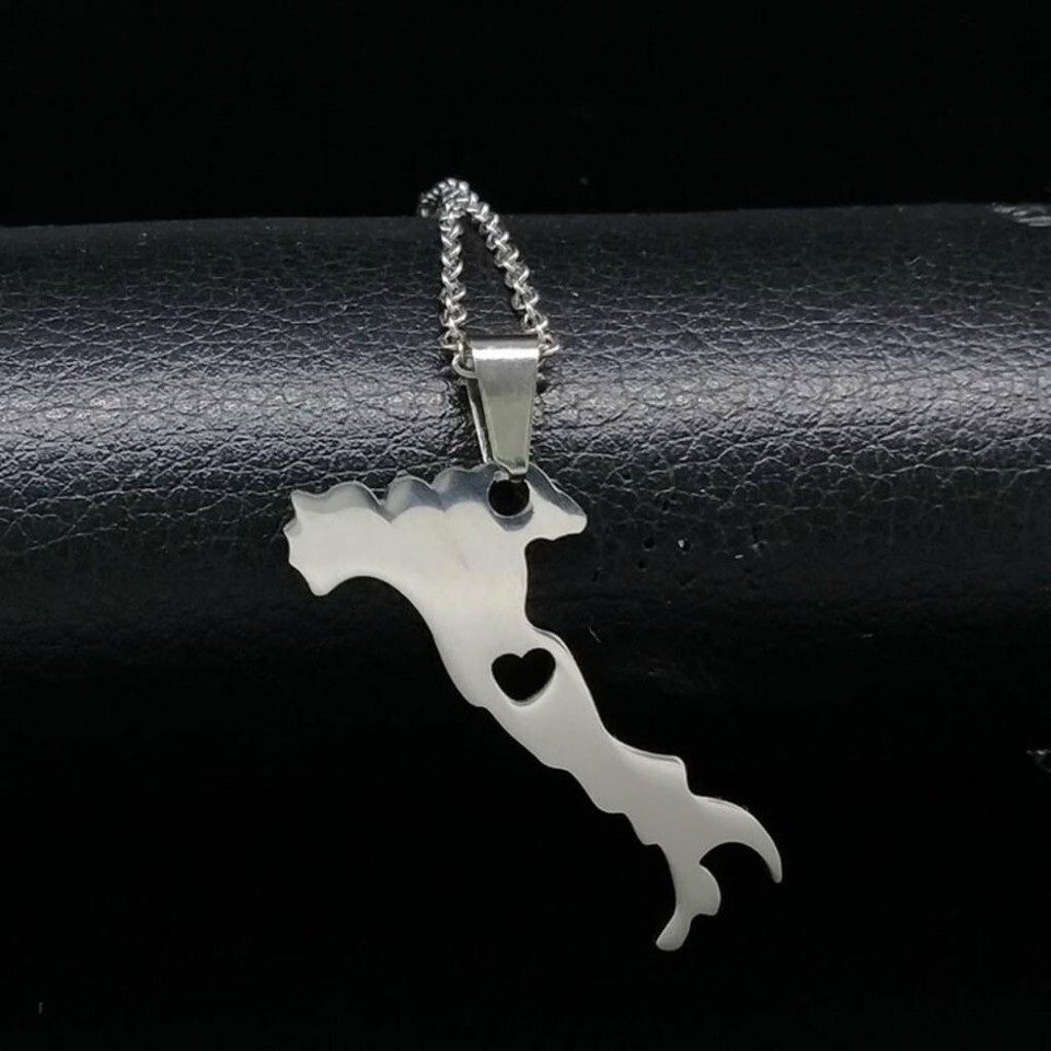 I LOVE ITALY NECKLACE 20" Chain Stainless Steel Pendant Italian Map Heart NEW