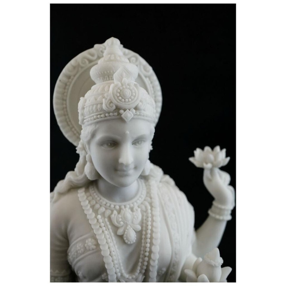 LAKSHMI STATUE 10" Hindu Indian Wealth Goddess White Marble Finish Resin Laxmi