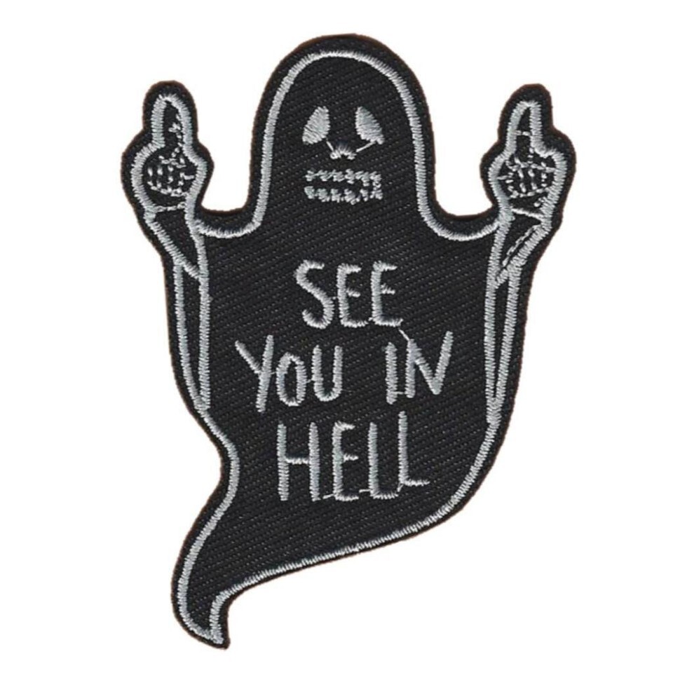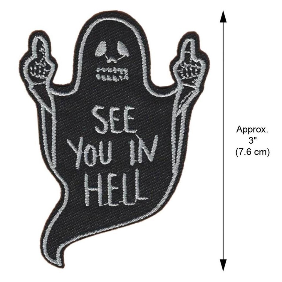 SEE YOU IN HELL IRON ON PATCH 3" Black Funny Ghost Middle Finger Embroidered NEW