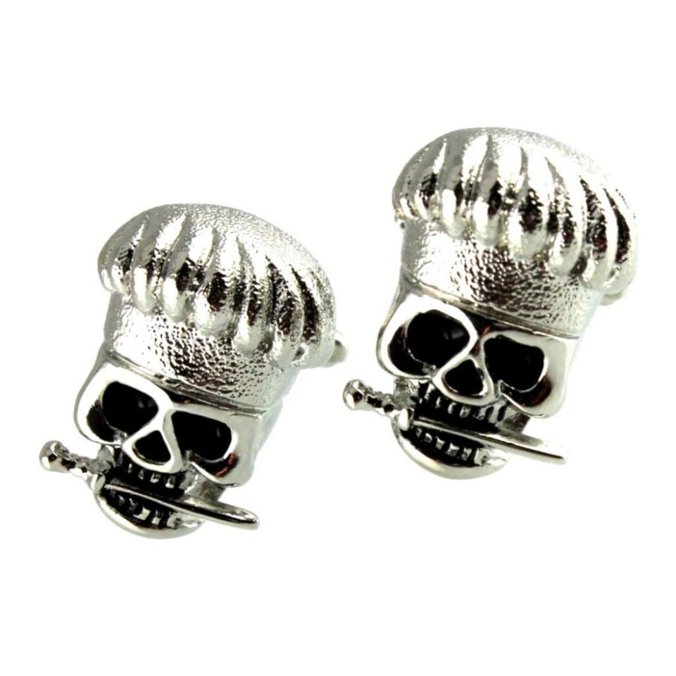SKULL CHEF CUFFLINKS Cook Free or Die Skeleton Knife Kitchen Anthony Bourdain