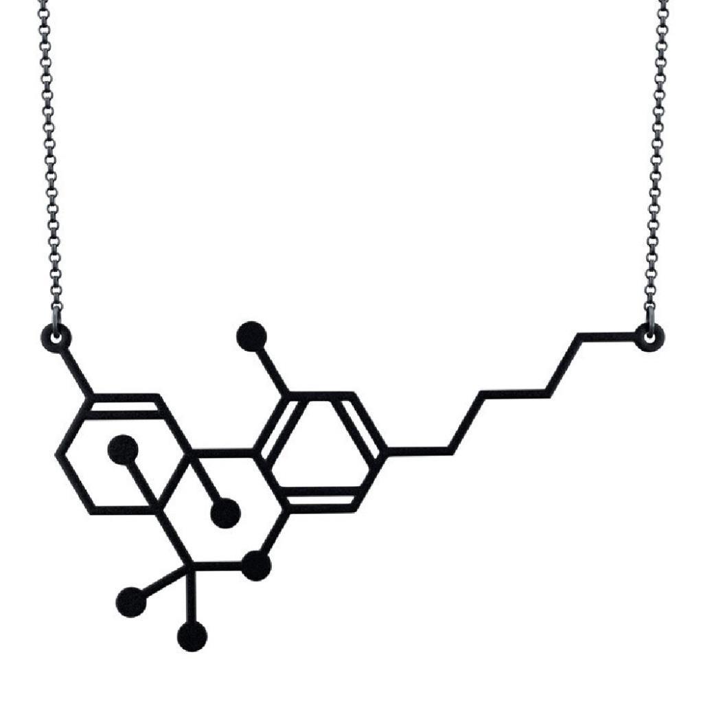 THC MOLECULE NECKLACE Marijuana Pot Weed Science Chemistry Black Gold or Silver