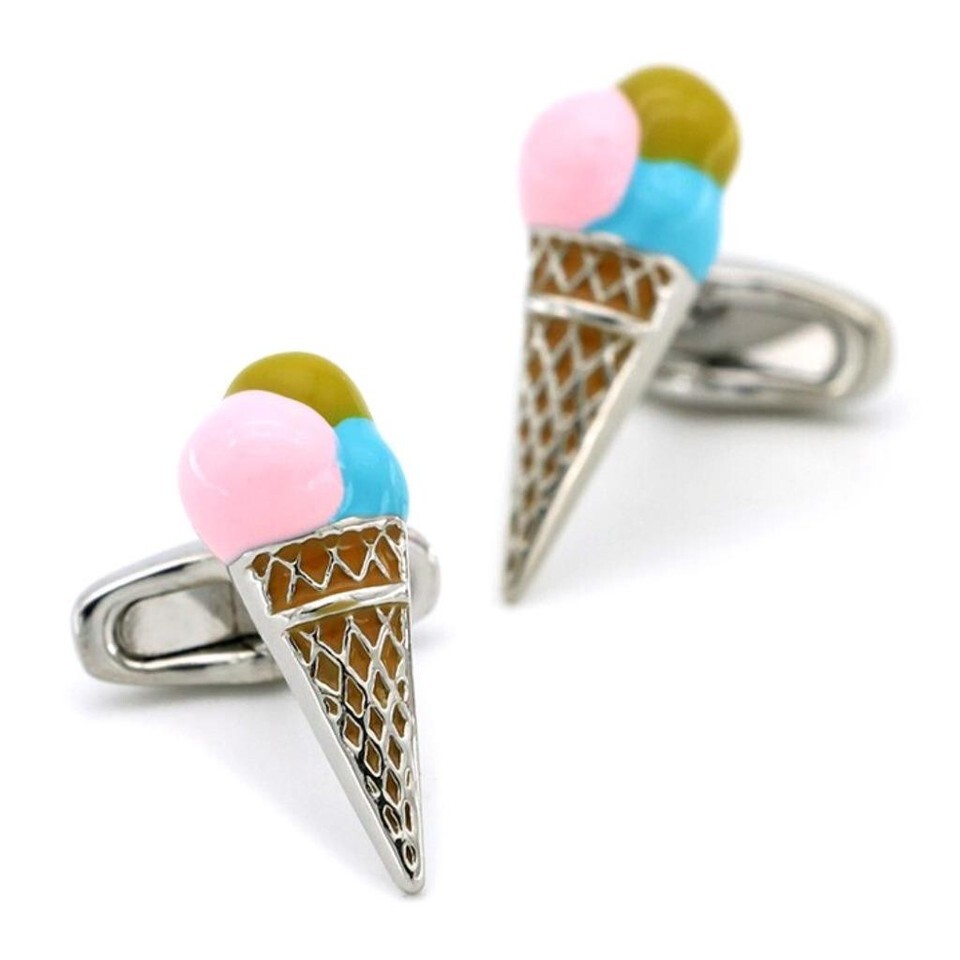 ICE CREAM CONE CUFFLINKS Summer Party High Quality Metal Enamel NEW w GIFT BAG