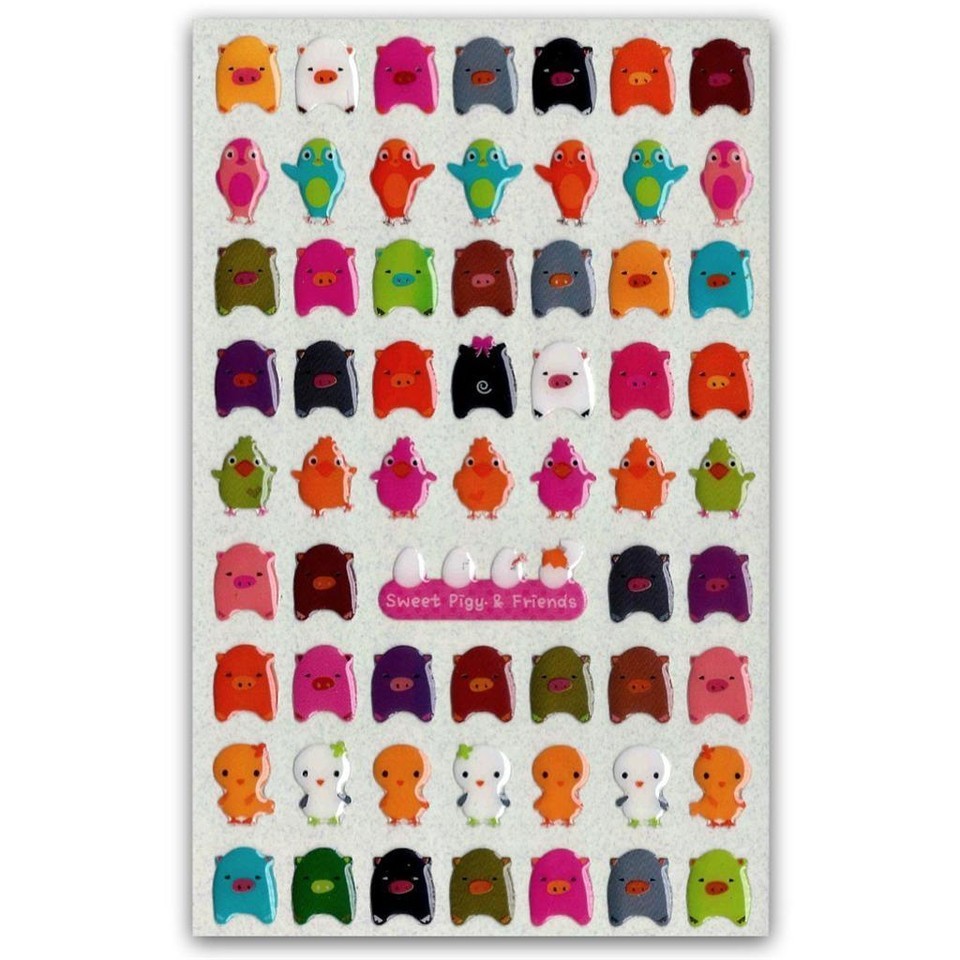 ✰ CUTE COLORFUL PIG BIRD & CHICKEN GEL STICKERS Epoxy Sticker Sheet Scrapbook