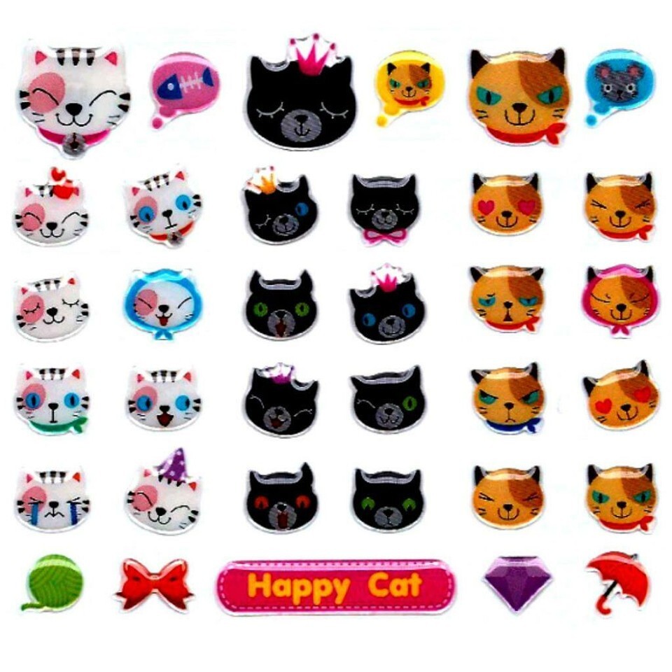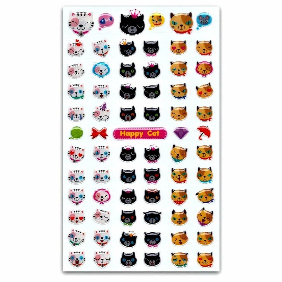 CUTE HAPPY CAT STICKERS Kitty Face Animal Craft Scrapbook Gel Sticker Sheet NEW