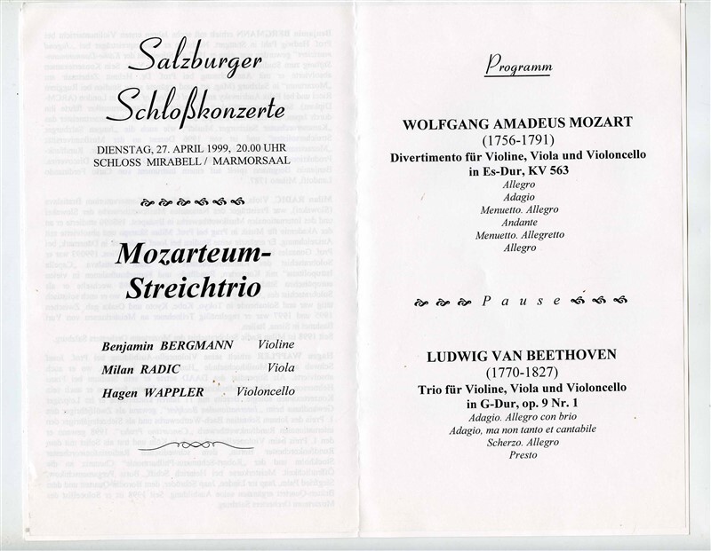 Salzburger Schloskonzerte Mozart Beethoven Concert Program 1999