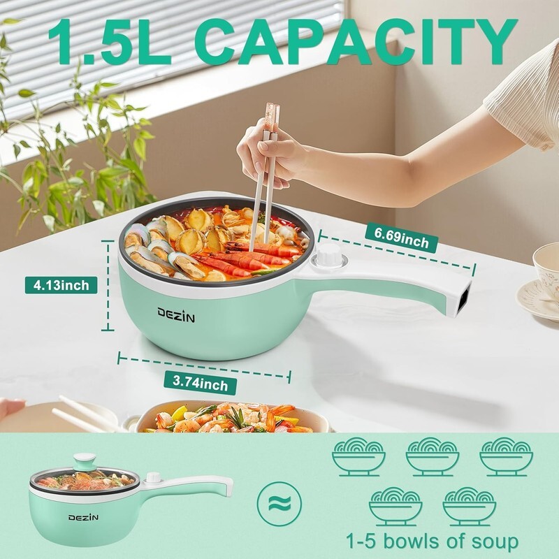 Hot Pot Electric Upgraded, Non-Stick Saute Pan, Rapid Noodles Electric Pot 1.5L