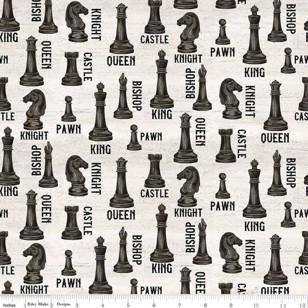 Cotton Chess Pieces Board Games on White Cotton Fabric Print by the Yard D682.74