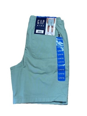 The Gap Boy's Elastic Waistband Shorts in size L (10/12) are perfect for casual occasions with their drawstring closure, mid-rise fit, and comfortable stretch soft fabric. Made of a blend of spandex and cotton, these shorts feature front and back pockets for added convenience. The granite green color and preppy theme make them a stylish choice for boys throughout all seasons. Easy to care for with machine washable instructions, these shorts offer both comfort and durability for everyday wear.