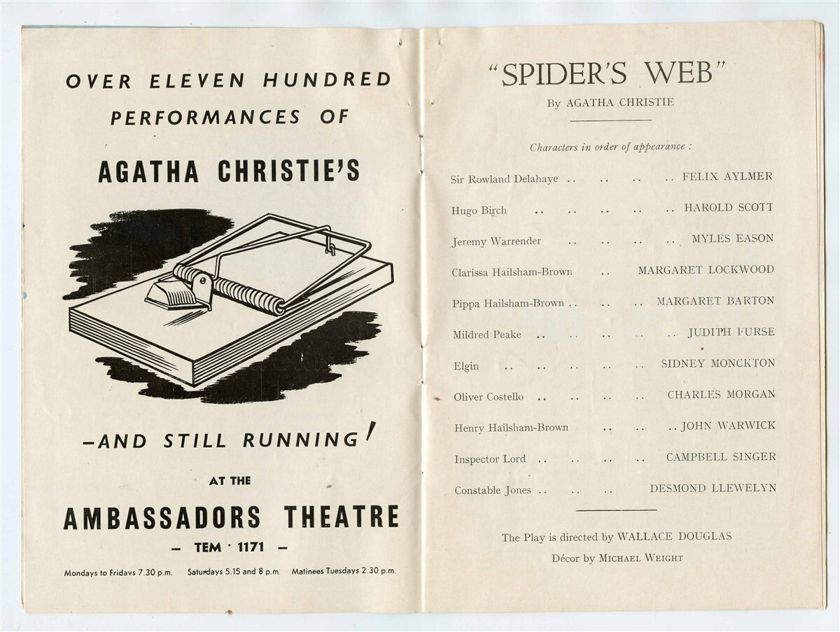 Agatha Christie's Spider's Web Program Savoy London England Margaret Lockwood