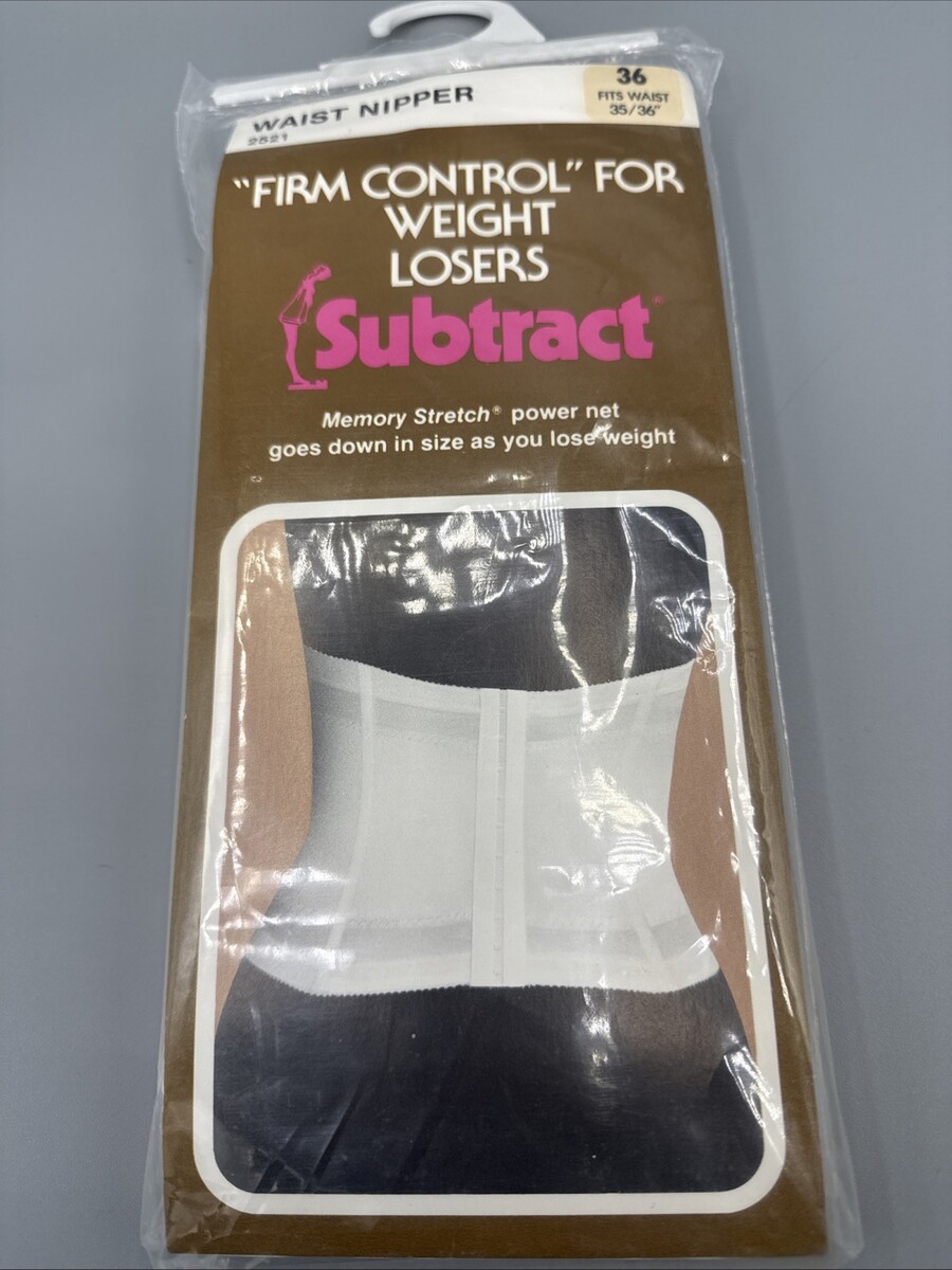 Vintage Subtract 2521 WAIST NIPPER Firm Control Stretch Corset Size 36 for waist 35" or 36". White, appears unused. Elastic tight.