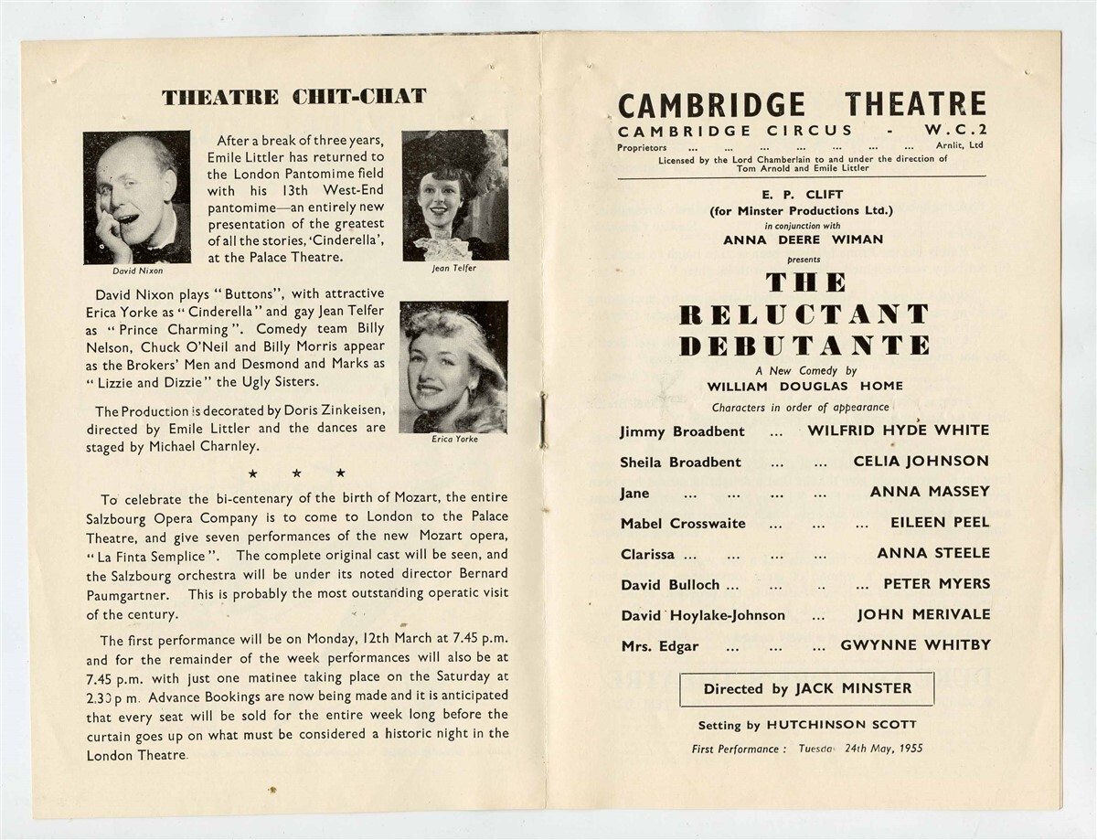 The Reluctant Debutante Program. From the Cambridge Theatre in London England in 1955 . Starring Wilfrid Hyde White