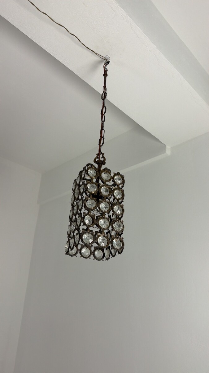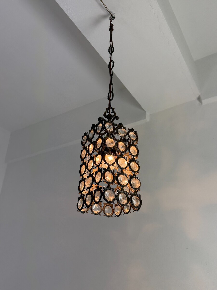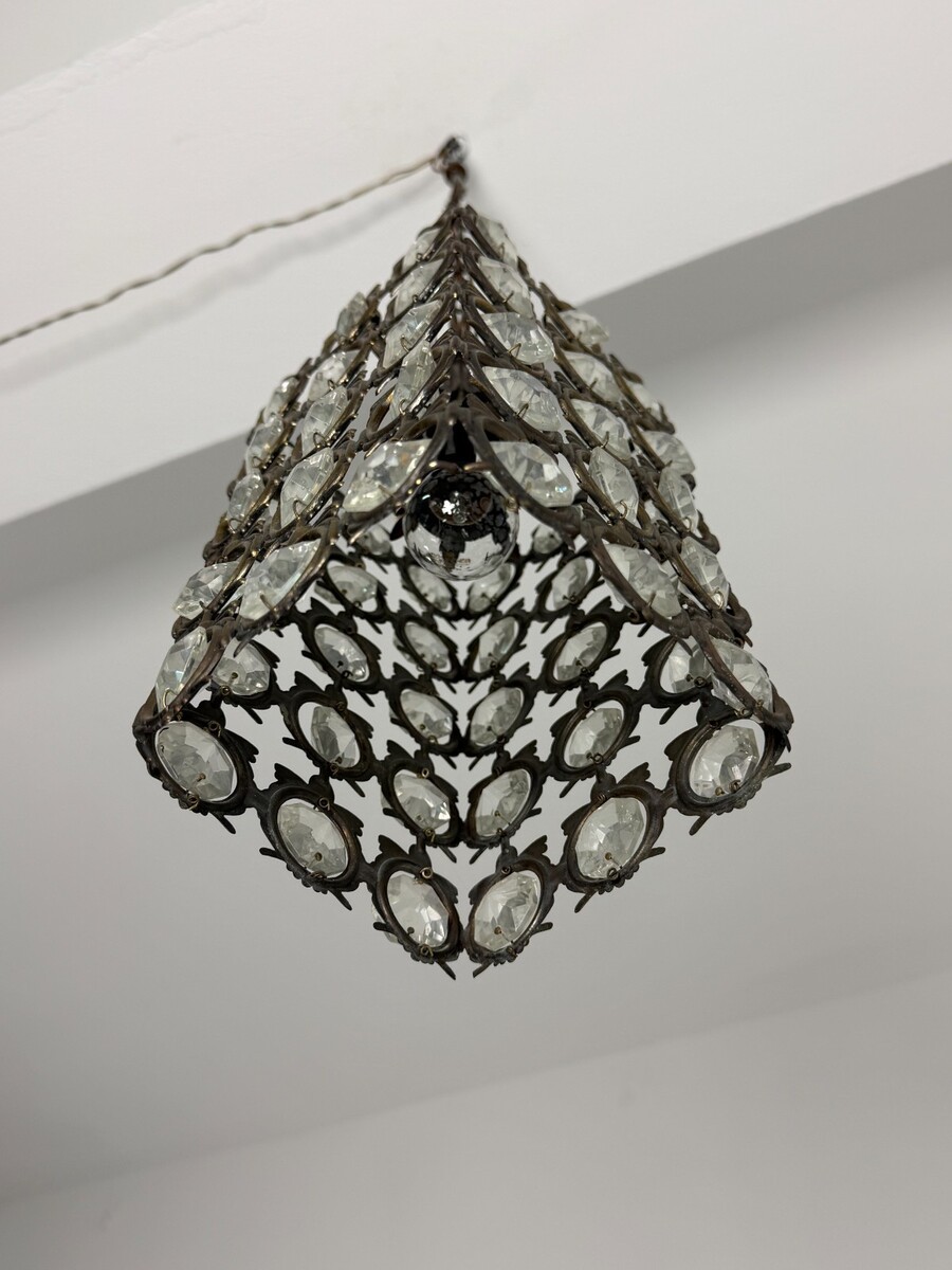 Piccolo lampadario italiano mid-century in bronzo e cristalli, anni '40