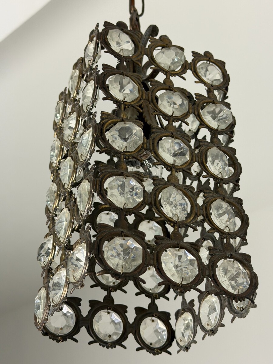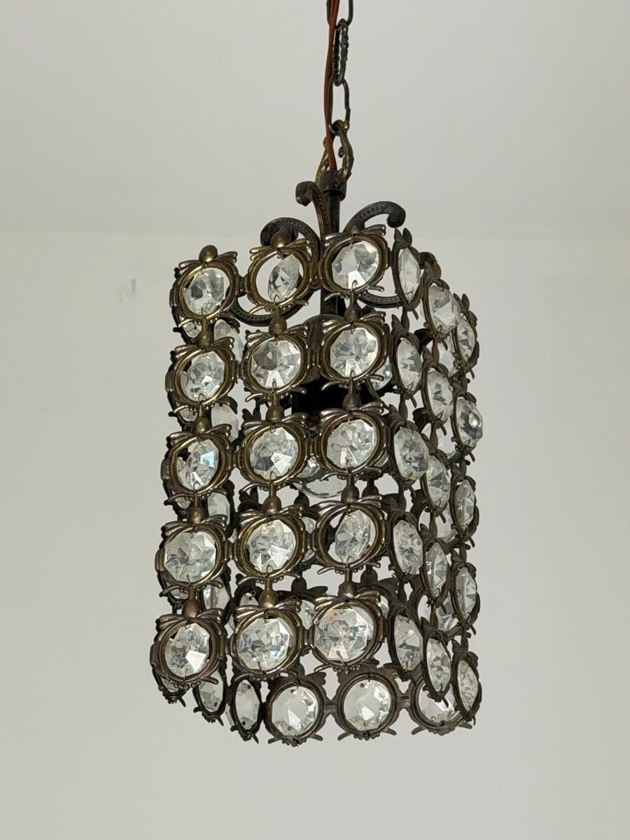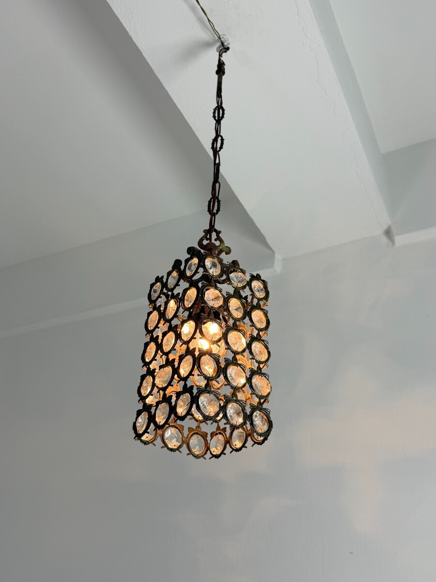 Piccolo lampadario italiano mid-century in bronzo e cristalli, anni '40.